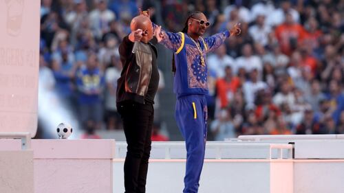 Super Bowl LVI Halftime Show INGLEWOOD, CALIFORNIA - FEBRUARY 13: Dr. Dre and Snoop Dogg perform during the Pepsi Super Bowl LVI Halftime Show at SoFi Stadium on February 13, 2022 in Inglewood, California. (Photo by Steph Chambers/Getty Images) (Steph Chambers/Getty Images)