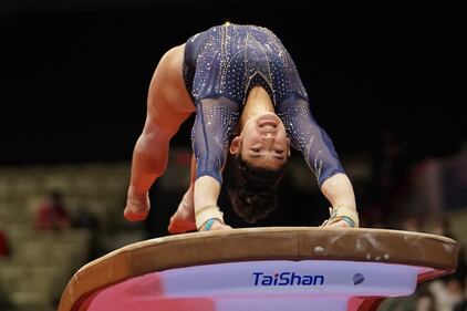 Photos: US women compete in 2021 World Gymnastics Championships qualifying Kayla DiCello of the United States competes on the vault during women's qualification on day one of the 50th FIG Artistic Gymnastics Championships at Kitakyushu General Gymnasium on October 18, 2021, in Kitakyushu, Fukuoka, Japan. (Toru Hanai/Getty Images)