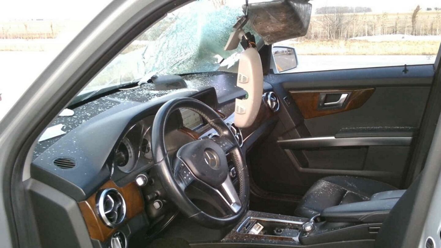 A vehicle in front of the Mercedes-Benz SUV struck a metal pole at around 4:45 p.m., sending it airborne, WJW reported.