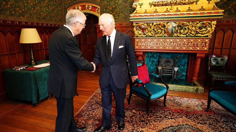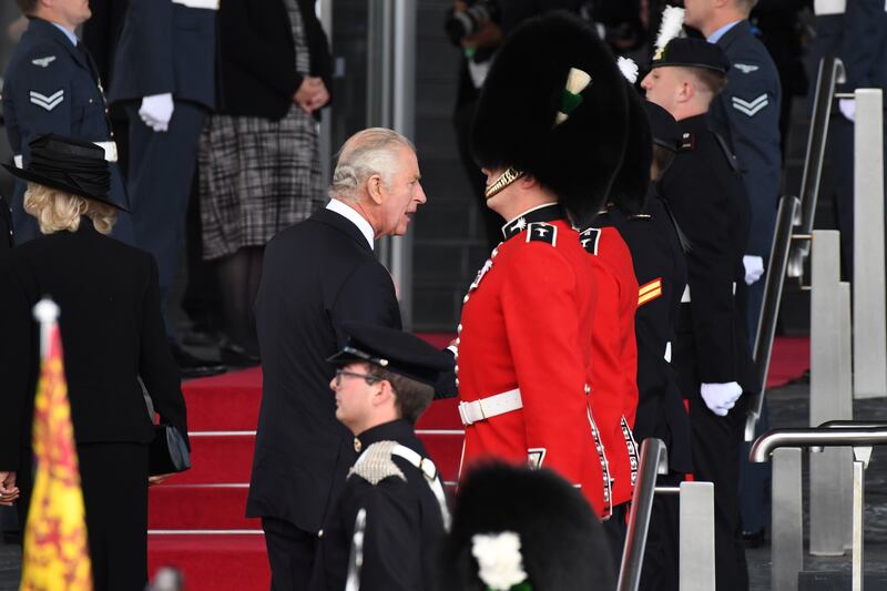 Photos: King Charles III, wife Camilla visit Wales King Charles III during an audience with First Minister of Wales Mark Drakeford at Cardiff Castle on September 16, 2022 in Cardiff, Wales. King Charles III is visiting Wales for the first time since ascending the throne following the death of his mother, Queen Elizabeth II, who died at Balmoral Castle on September 8, 2022. (WPA Pool/Getty Images)