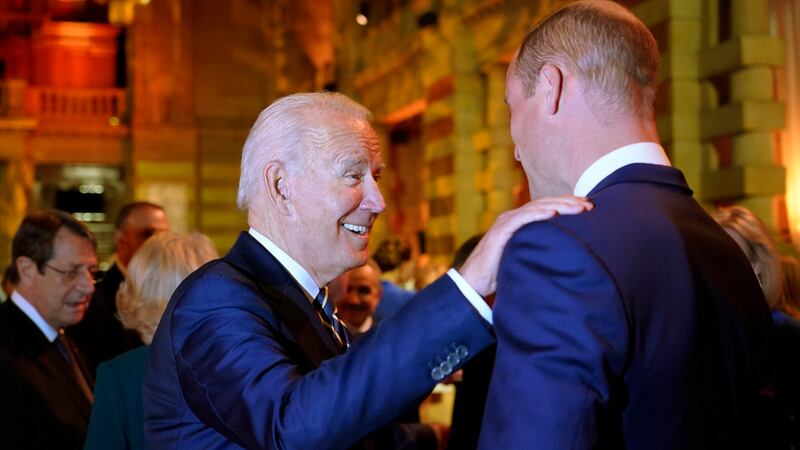 Photos: Kate Middleton, Prince William attend UN climate conference US President Joe Biden greets Britain's Prince William, Duke of Cambridge, as they arrive to attend an evening reception to mark the opening day of the COP26 summit at the Scottish Event Campus (SEC) on November 1, 2021, in Glasgow, United Kingdom. (Alberto Pezzali - Pool/Getty Images)