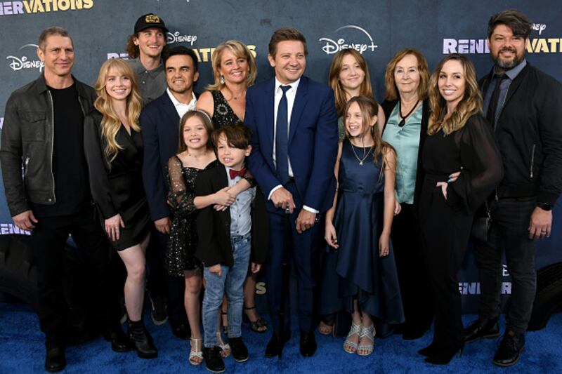 Premiere LOS ANGELES, CALIFORNIA - APRIL 11: Jeremy Renner (C) and family attend the Los Angeles premiere of Disney+'s original series "Rennervations" at Regency Village Theatre on April 11, 2023 in Los Angeles, California. (Photo by Jon Kopaloff/Getty Images) (Jon Kopaloff/Getty Images)
