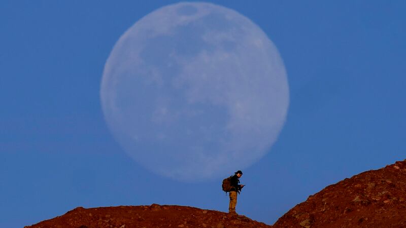 Photos: February 2021 Snow Moon brightens the night sky The nearly-full moon rises beyond a hiker at Papago Park, Thursday, Feb. 25, 2021, in Phoenix. (AP Photo/Charlie Riedel)