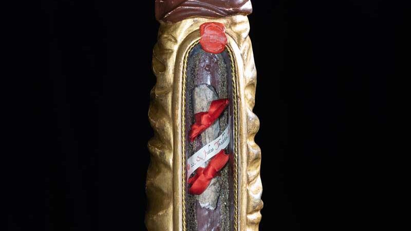 According to St. Peter’s, Jude’s arm was placed in a wooden reliquary shaped like a priest’s hand giving a blessing. A reliquary is a special receptacle for body parts or personal items of those deemed to be saints and martyrs by the Catholic church.