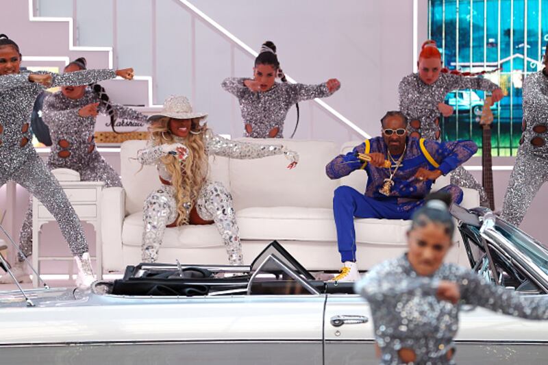 Super Bowl LVI Halftime Show INGLEWOOD, CALIFORNIA - FEBRUARY 13: (L-R) Mary J. Blige and Snoop Dogg perform during the Pepsi Super Bowl LVI Halftime Show at SoFi Stadium on February 13, 2022 in Inglewood, California. (Photo by Kevin C. Cox/Getty Images) (Kevin C. Cox/Getty Images)