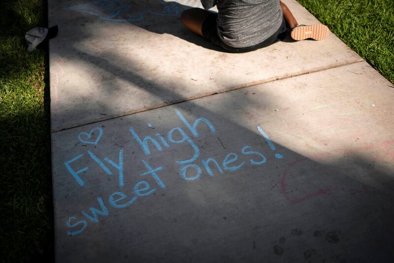 Uvalde in mourning Messages written in chalk decorate the footpaths at a memorial site for victims killed in the Robb Elementary school shooting, Saturday, May 28, 2022, in Uvalde, Texas. (AP Photo/Wong Maye-E) (Wong Maye-E/AP)