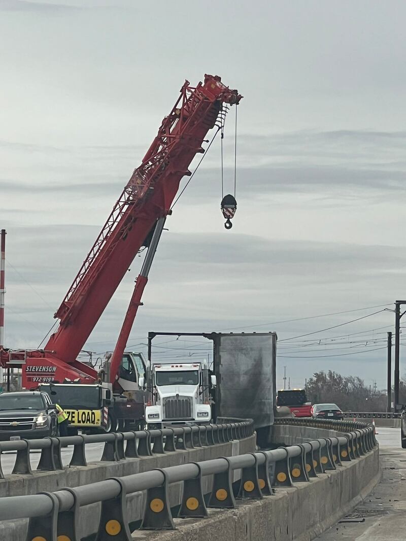 Crews brought in a crane to help remove the truck from the bridge. When the crane brought the trailer up, the cab detached and fell back into the water, WLS reported.