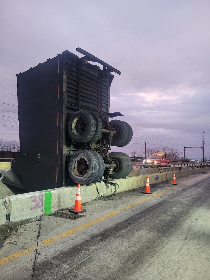 In a news release, the Indiana State Police said its preliminary investigation showed the UPS tractor-trailer was traveling west on Interstate 90 when the vehicle veered from the left lane and struck the center median. The force of the crash sent the truck over the wall and into the Calumet River below.