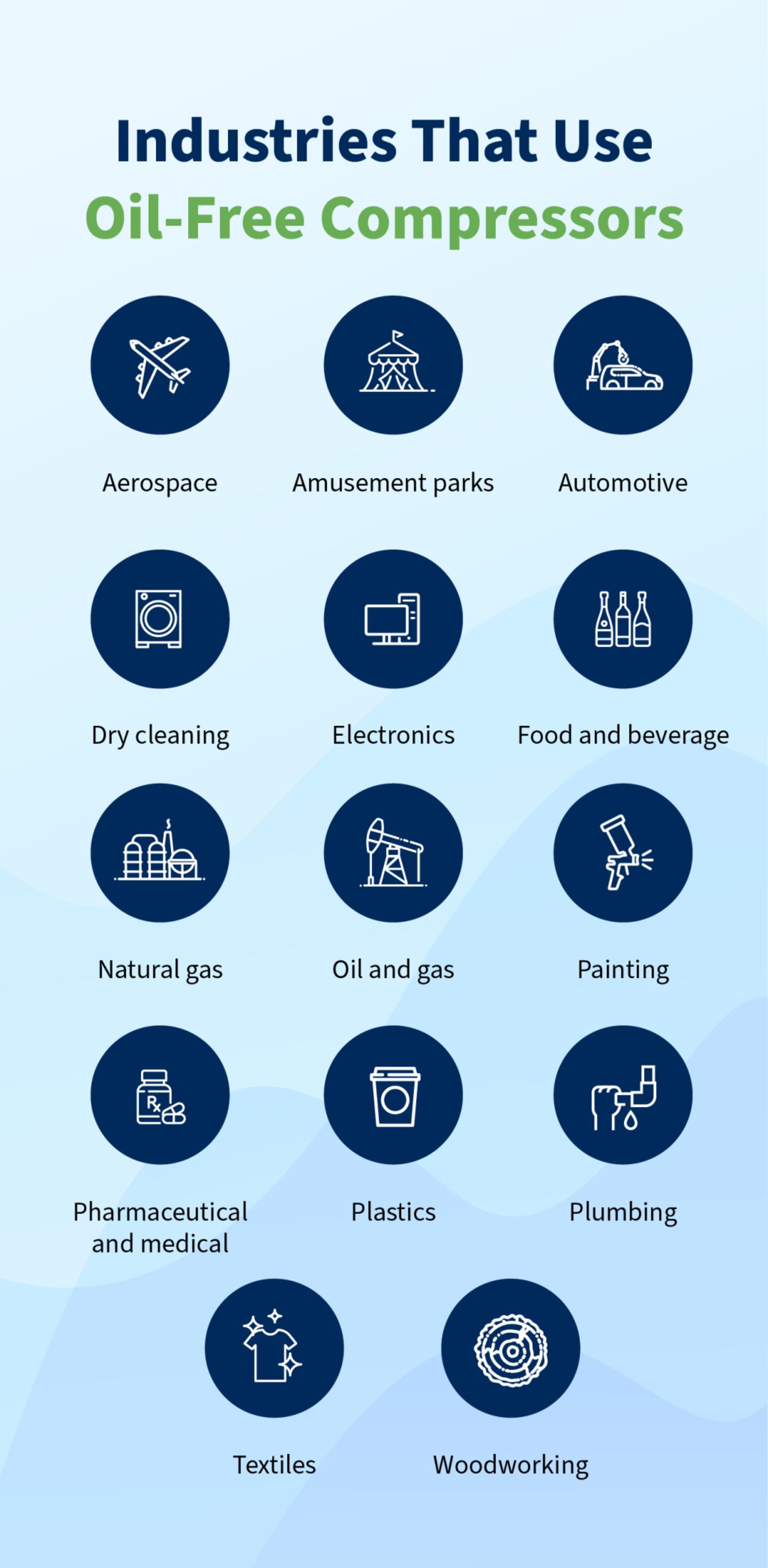 Many sectors benefit from using oil-free compressors in their operations, such as: